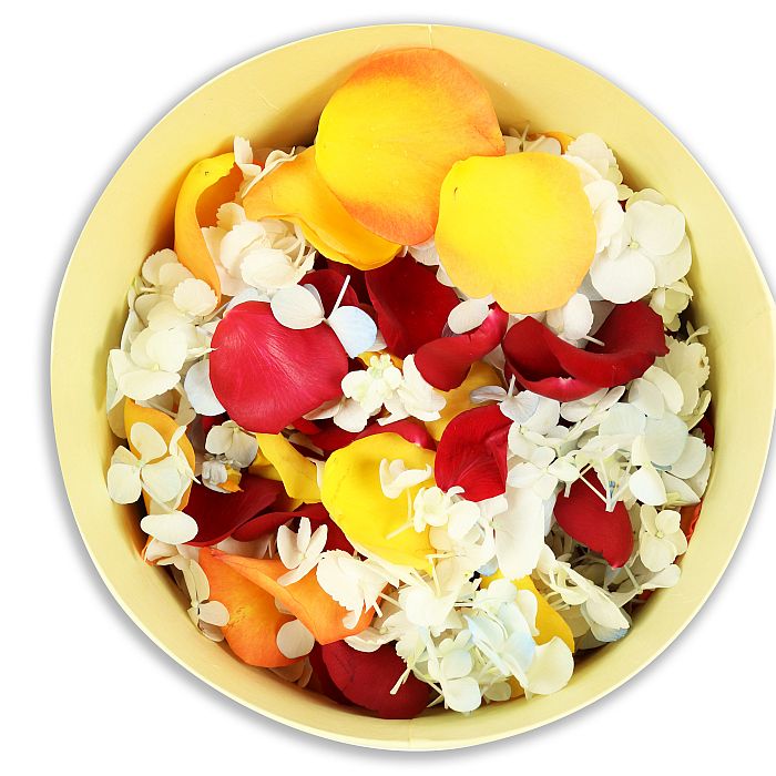 Experience the unique elegance of our handcrafted flower arrangement, designed to captivate and impress. This stunning bouquet features a harmonious blend of Hydrangea, Rose, and Chrysanthemum petals, creating a vibrant and eye-catching display. Each flower is carefully chosen for its exceptional quality and freshness.